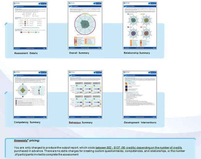 threesixty° looks at specific aspects of people's working behaviour, such as their people management, team working or interpersonal style, with a view to improving it. It is based on objective data gathered from people who are well positioned to observe the individual at work - typically their own staff, peers and manager. Feedback, whilst completely anonymous, is therefore very specific, meaningful and powerful.