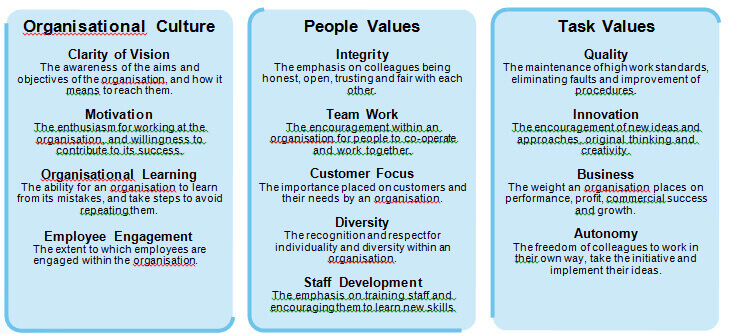- Provides a structured framework for understanding, interpreting and managing corporate culture, values and engagement